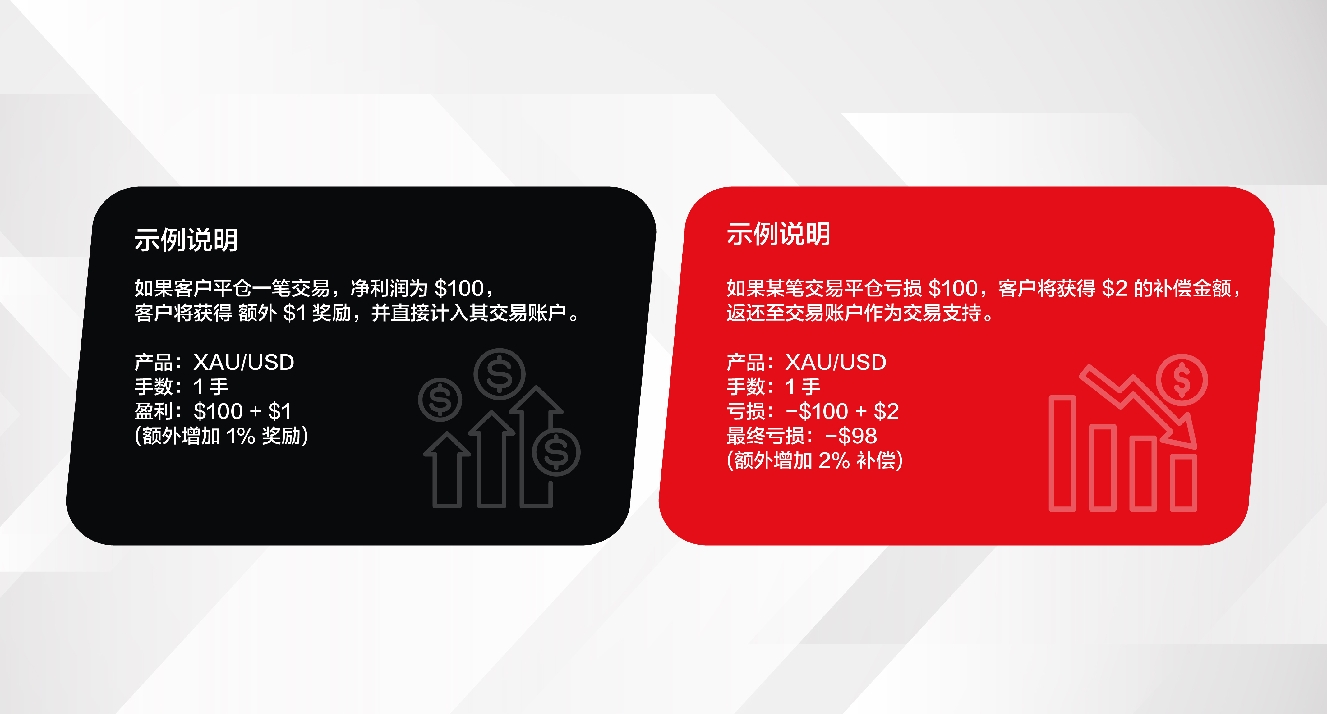 - 并在每笔已平仓亏损交易的净亏损获得2%的交易返现。