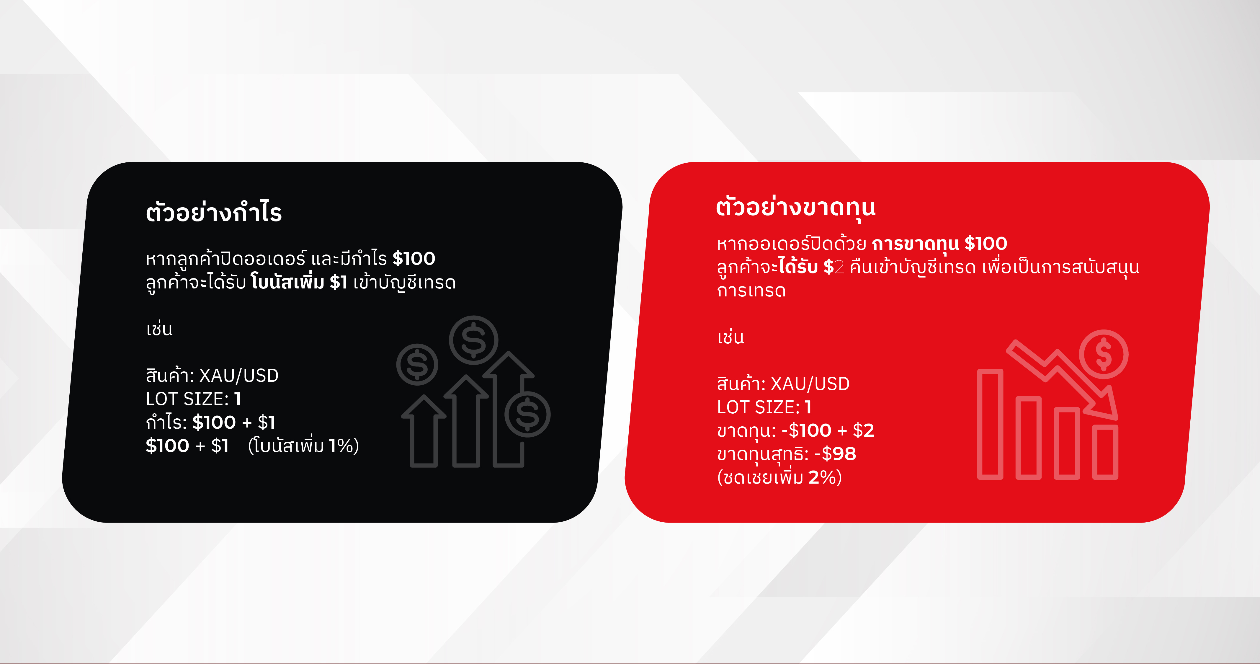 ○ Trading Cashback 2% จากยอดขาดทุนสุทธิของออเดอร์ที่ปิดด้วยการขาดทุน