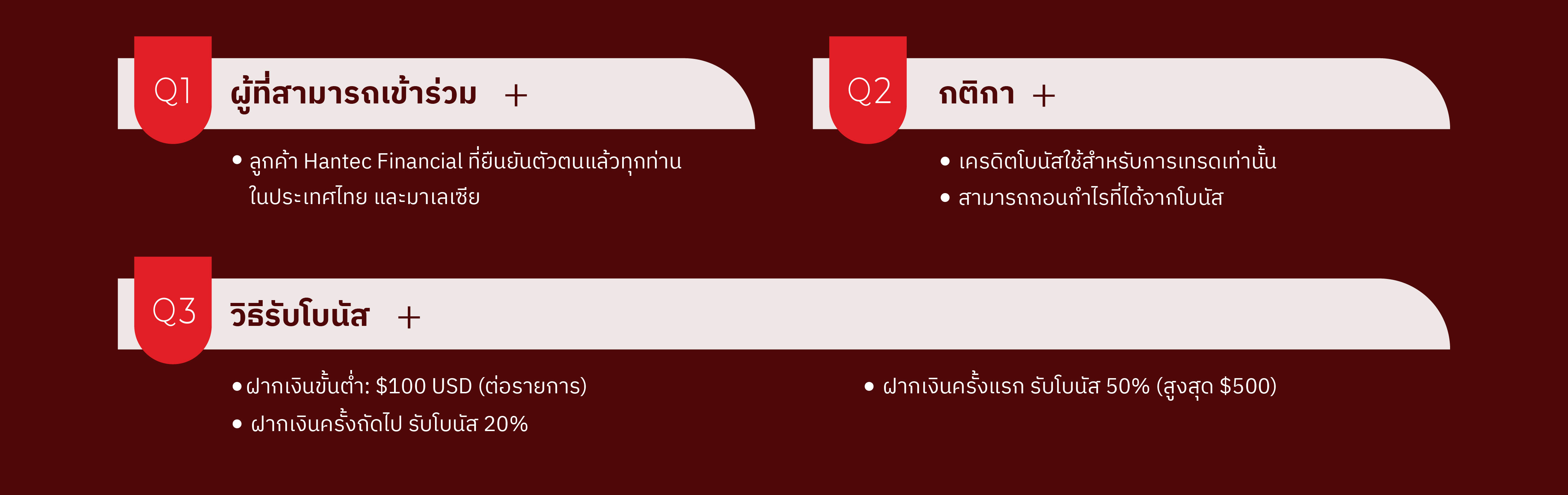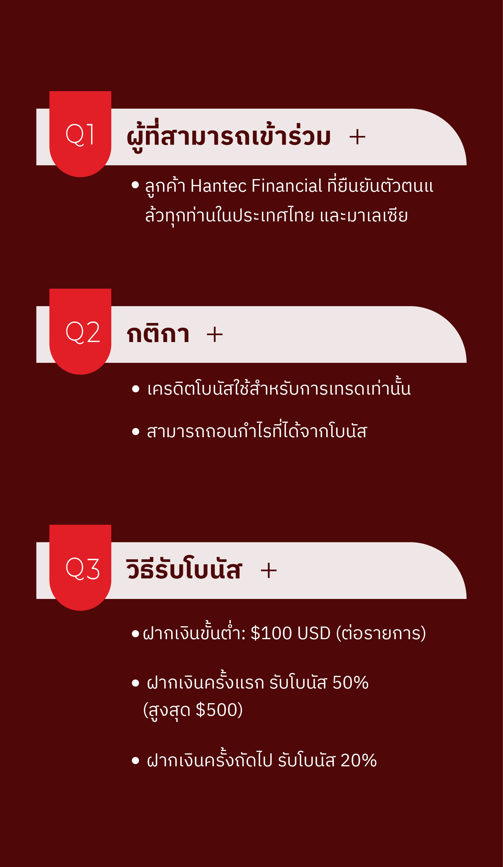 ผู้เข้าร่วม: ลูกค้า Hantec Financial ทุกท่านในประเทศไทยและมาเลเซียมีสิทธิ์เข้าร่วมแคมเปญนี้
